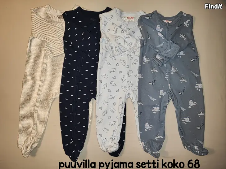 4 kpl puuvilla pyjamasetti, vaaleansininen, tummansininen, sininen, raidallinen.
