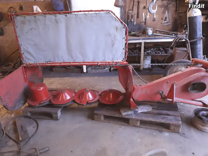 Slåttermaskin, tallriksslåttermaskin arb.bredd 165 cm. Kugghjulsdrift. Maskinen servad o genomgången. I bra skick maskinen. Testmöjlighet. Hemtranspot ordnas. Ev byte till söndrig slåttermaskin. Pris 916 + moms 234 = 1150 € Ring 04006923117