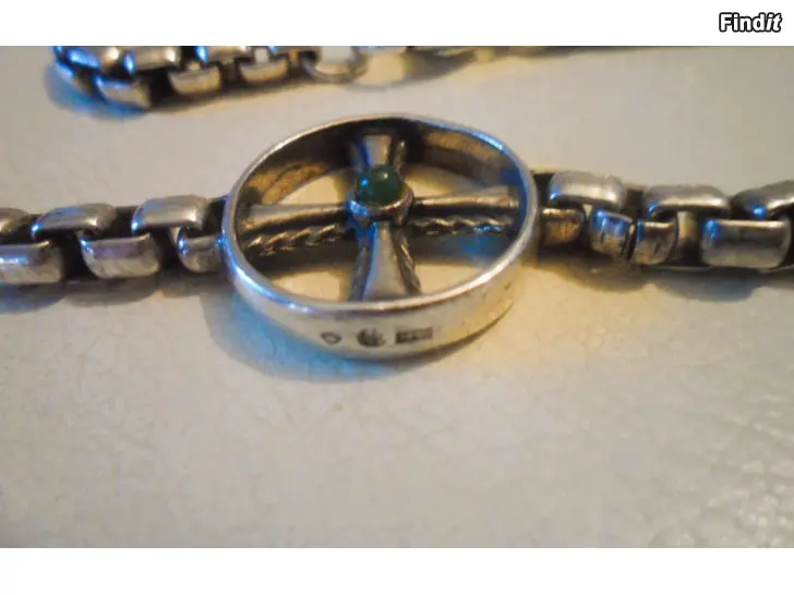 Kuvienmukainen hopeinen kaulakoru, kivi nefriitti, pituus 50,7cm. Leimat: kruunu, KK, 925, 925.