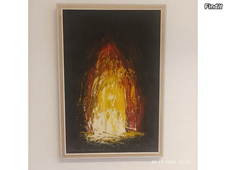 Kankaalle maalattu öljyväritaulu. Mitoiltaan kehysten kanssa 85x59 cm. Signeeraus R. Halmetoja -68.