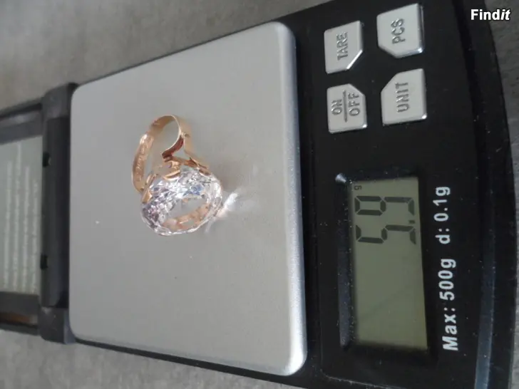 Isokivinen sormus 14 karaatin kultaa ja paino 5,9g