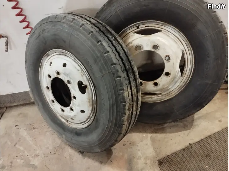 2kpl Michelin x 9.00-20 renkaat, pinnaamattomat 14pr.Varastossa seisseet,melkein ajamattomat vaikka ikää on.Pintaa n.11mm.Vanne 8-pulttinen ja sopii useempaan harraste k-autoon,mm.M-B,Bedford,ym.Vanteet putsattu maalausta varten valmiiksi.