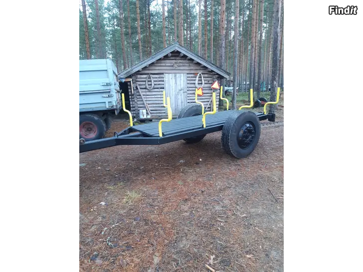 Tukevä kärri.nostetaan kyytiin/tai ajetaan. Mahtuu isoon auton peräkärryyn. Paino n.500kg