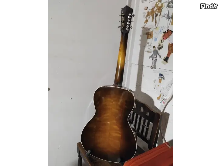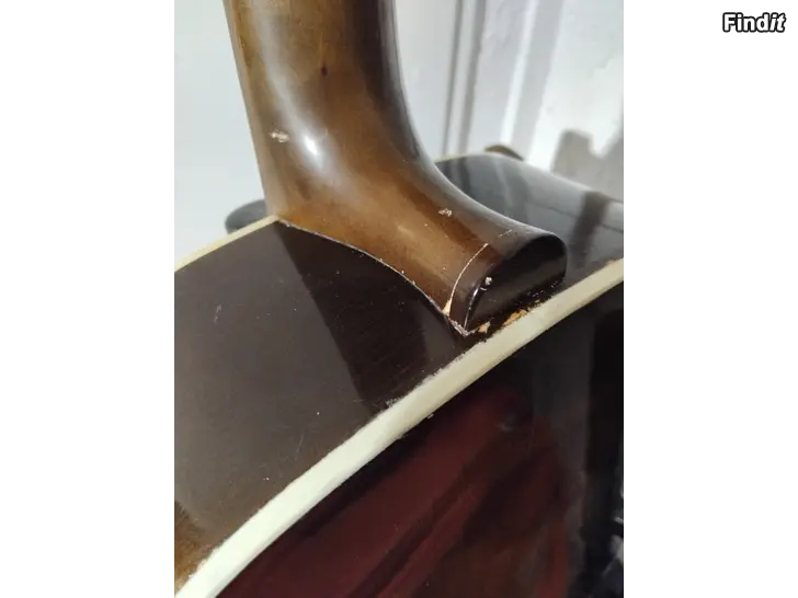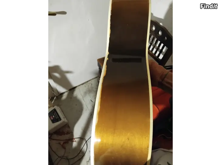 Kaunis kokopuinen kitara menneiltä vuosilta. Ei suinkaan ole säilynyt täydellisesti. Kyljessä halkeamavaurio joka kattaa n 1/4 kyljen pituudelta. Liimana oletettavasti jokin lämpöreagoiva liima, merkkiä tuntematon erikeeper? Korjausta hiukan päivitetty titebond hide gluella. Vaurio selkeästi havaittavissa. Ei ole sisäpuolelta tuettu millään, ei resonoi tai vaikuta sointiin mielestäni oleellisesti.