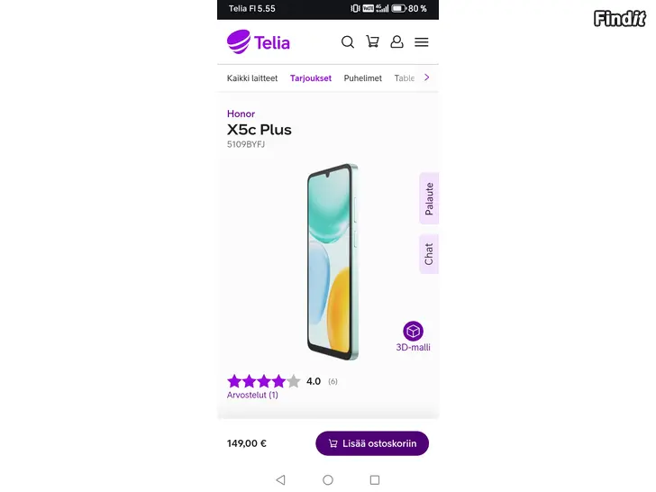 Findit ei vastaa ilmoitetusta tuotteesta tai ilmoituksen sisällöstä. SMS-viestien lähettäminen ilmoittajalle mainostarkoituksessa on kiellettyä. Ilmoittaja ei halua ilmoitus- ym. myyjien soittelevan. Jos sinulla on muuta kysyttävää tai mielipiteitä, ottakaa ystävällisesti yhteyttä asiakaspalveluumme.