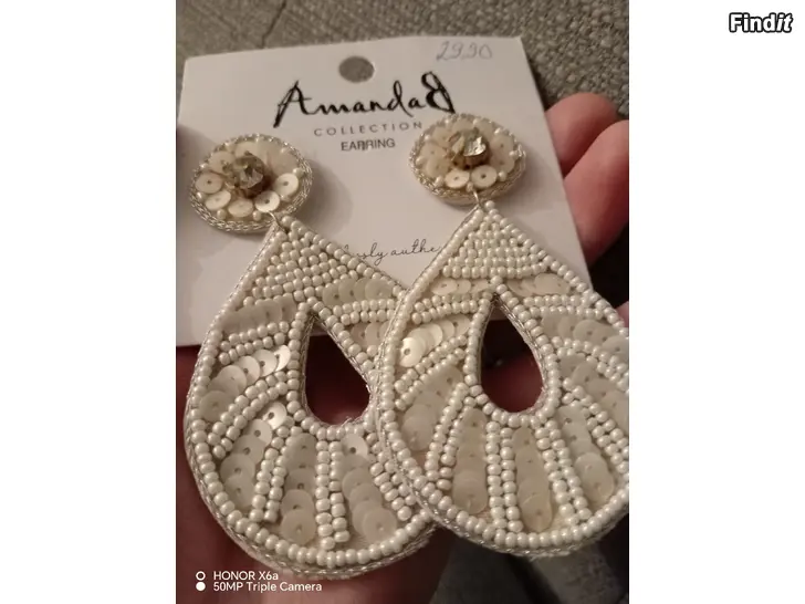 Myydään käyttämättömät Amanda B huopakorvikset. Helmiä, timantit , paljetteja. Toisella puolen pelkkää huopaa.