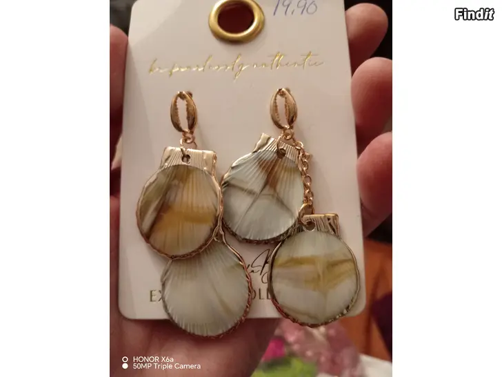 Uudet Amanda B roikkuvat simpukkakorvikset.
