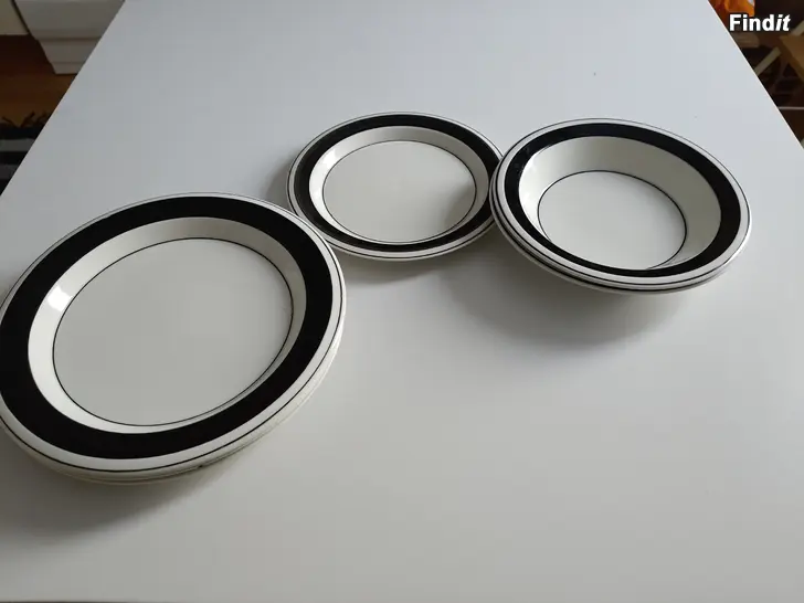 Suoraan 70-luvulta 3 kpl matalia isoja lautasia, 1 kpl pieni matala lautanen ja 2 kpl syviä lautasia. Täysin ehjiä, ei lohkeamia tai krakeloitumista.
