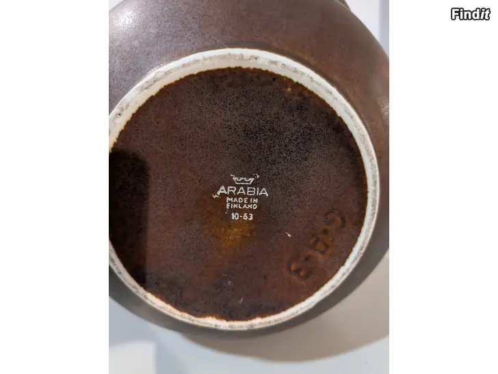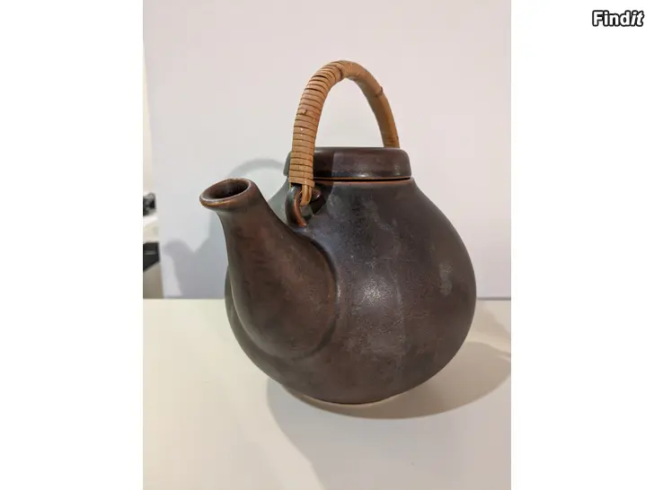 Arabia tekanna av Ulla Procopé, kallad GA3 från 1960-talet. Höjd till toppen av locket 15 cm, diameter på tjocka biten cirka 16 cm. Små skavanker finns men överlag i bra skick. Nås på telefon. Myös suomeksi