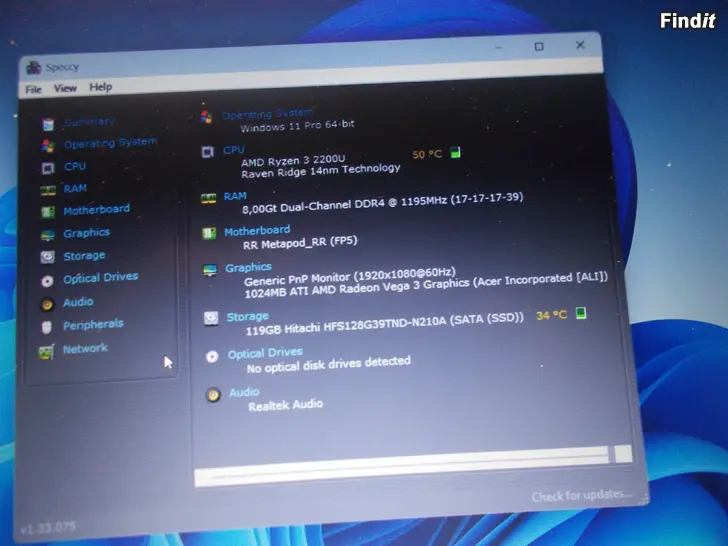 Hyväkuntoinen kannettava tietokone. 15,6 tuuman näyttö, täysnäppäimistö, Win 11 pro käyttöjärjestelmä, AMD Ryzen prosessori, RAM 8Gt, SSD 119Gb. Tarpeelliset ohjelmat, turvallinen selain ja virusturva asennettuna. Toimitus postiin tai matkahuoltoon kuluilla lisättynä. Lähiympäristöön kotiikuljetus.