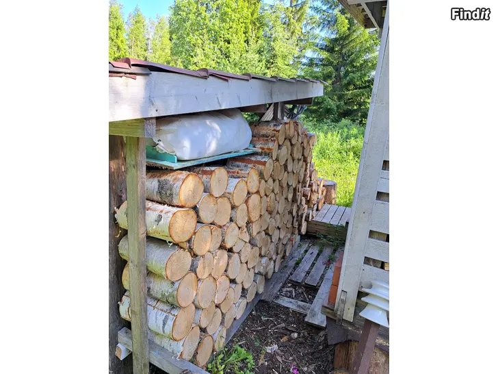 Kuvan kasa, noin pinomotti, polttopuuta pölkkyinä, koivua. Pölkkyjen pituus n. 25 - 35 cm ja paksuus n. 10 - 15 cm.
