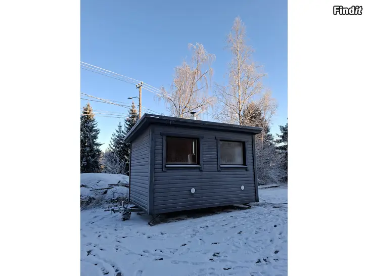 Bastun står på en förstärkt husvagns ram med 4 ner vevningsbara stöd och nya däck. väldigt smidig att flytta och passar perfekt om man vill ha en bastu nära vatten där en standard konstruktion inte är tillåtet