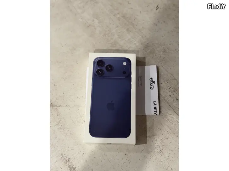 Iphone 17 pro max deep blue, 256GB muistilla. Ostettu Elisalta 30.12.2025, kokeiltu. Asennettu powerin laadukas dacota platinum panssarilasi arvo 40e sekä kameran linssien ympärille alumiiniosaan kalvo.