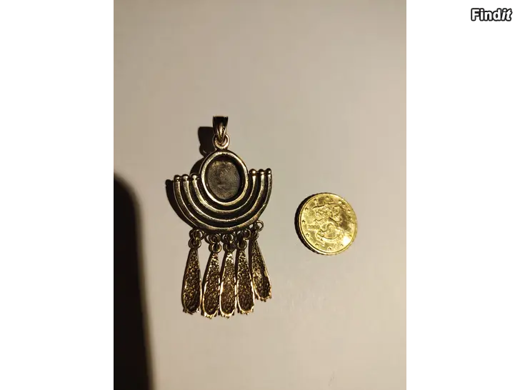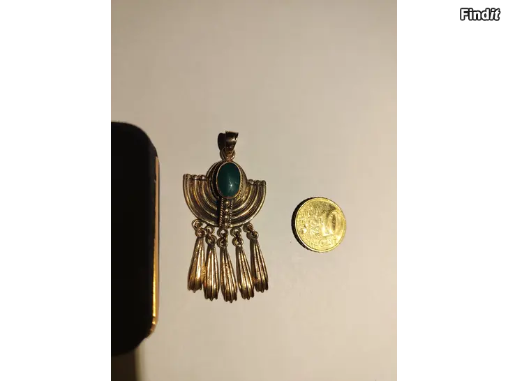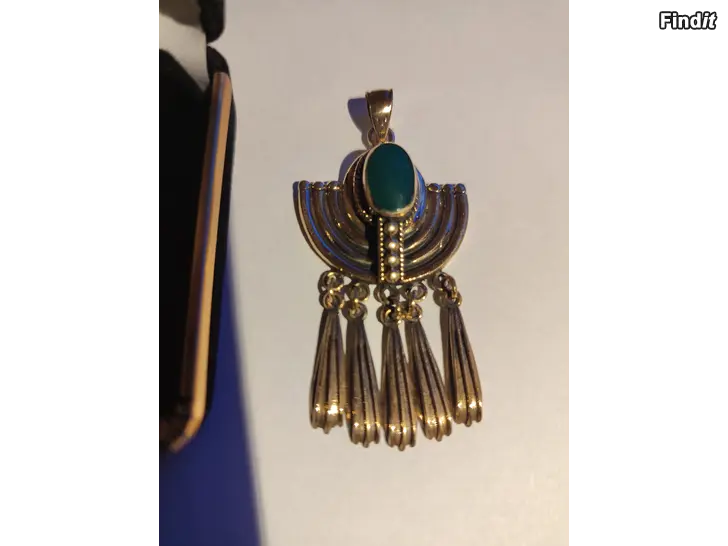 Kaunis uusi riipus, joka mielestäni on kullattua pronssia. Vihreän kiven materiaalia en tiedä.