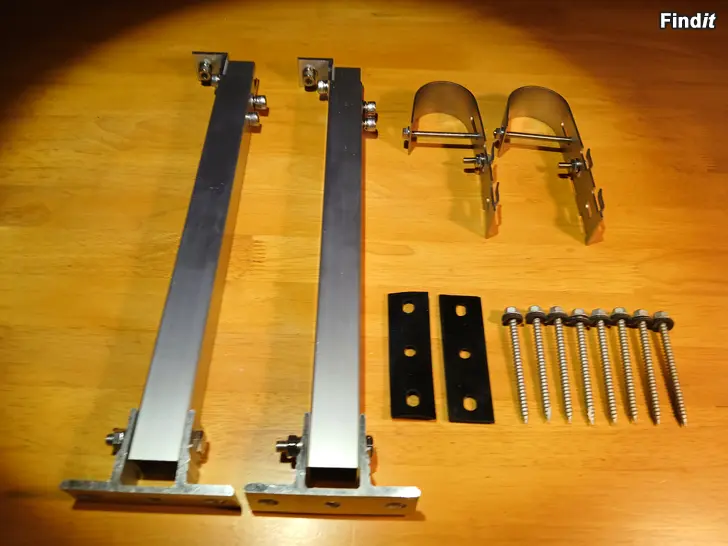 Koukut rosteria, kaiteen halkaisija alle 50mm. Alatuet alumiinia, pit. säädettävä 30-60cm. HIinta 40 eur.