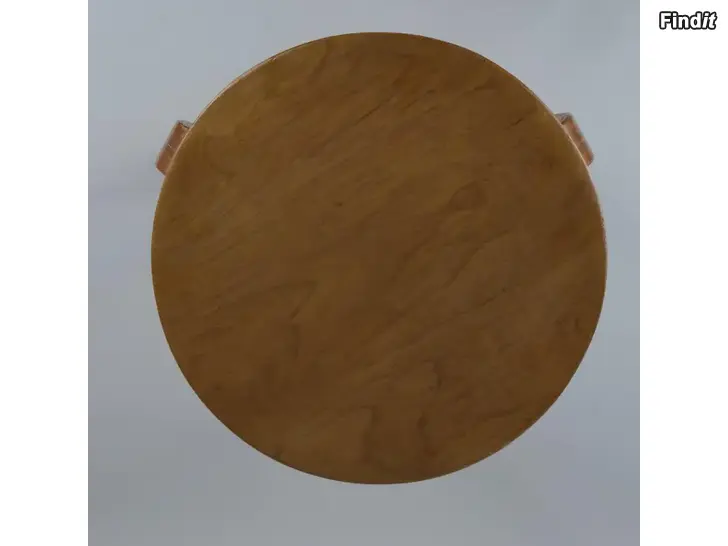 Hyvä käytetty vintage-kunto. Pinnassa naarmuja, punertavia tahroja ja patinaa, jotka antavat jakkaralle persoonallista luonnetta. Rakenteellisesti täysin ehjä ja tukeva, alkuperäiset ruuvit ja liitokset kunnossa.