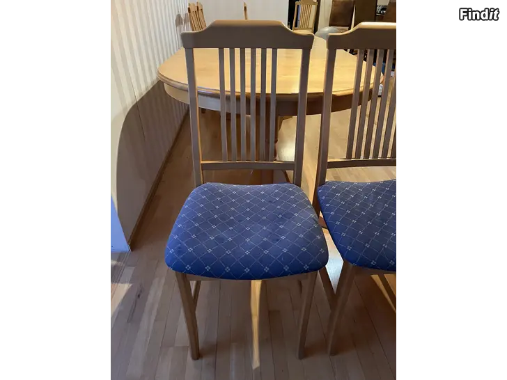 Myydään Esse möbel ruokailuryhmä. Ehjät, kulumaa on katso kuvat. Pöydän mittaus: pituus 2m, leveys 1m ja korkeus 72,5cm. Kahdessa tuolissa pehmusteet, muut 5 kpl ilman. Saa myös tarjota. Löytyy Pietarsaaresta.