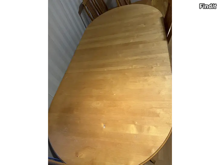 Säljes matbord och 7 st stolar från Esse möbel. Bordet och stolarna är hela, men skvanker finns se bilder. Mått på bordet: längd 2m, bredd 1m och höjd 72,5cm. Två av stolarna är klädda och fem utan. Går även bra att bjuda. Finns i Jakobstad.