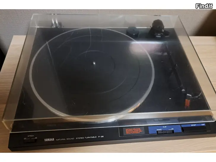 Yamaha P-28 puoliautomaattinen levysoitin. T4P tyypin äänirasia, joka ei vaadi virittelyä. 33/45 nopeudet. Single-keskiö mukana.