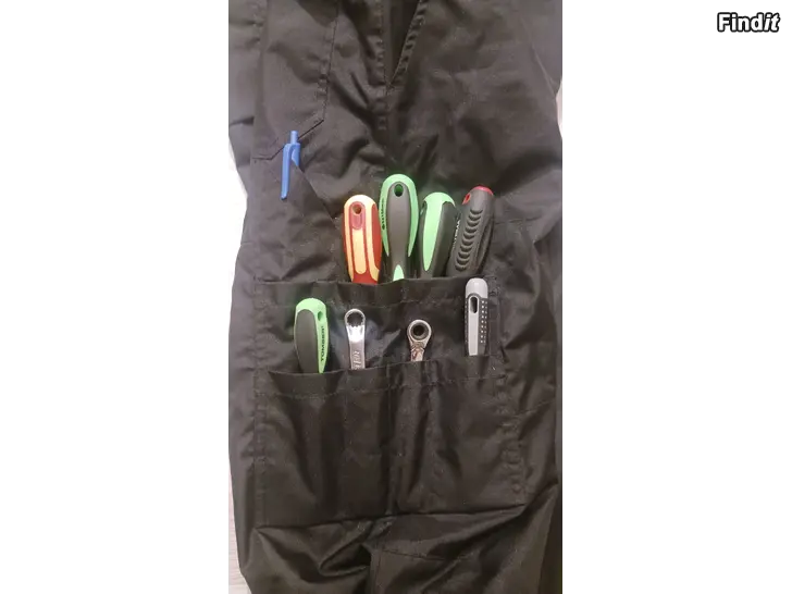 Oikealla lahkeessa useampi tasku työkalut antaa hieman kuvaa taskuista/työkalut ei tule mukaan. Mahtuu Useita työkaluja esim:puukko/meisselit/kyniä/ym