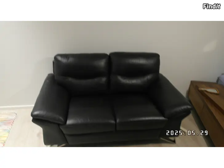 Kahden istuttava musta nahkasohva hyvässä kunnossa