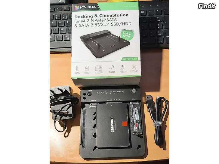 Myytävänä Icy Box kiintolevytelakka kloonaustoiminnolla.