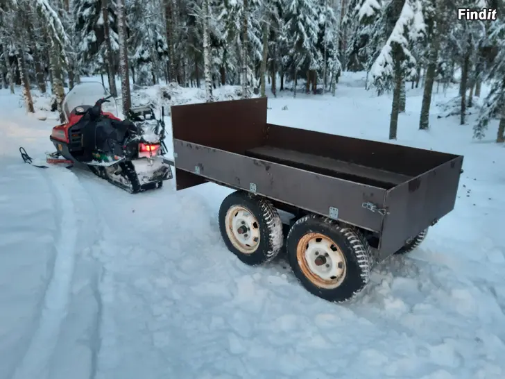 Monipuolinen telikärry mönkijän, pienen traktorin tai moottorikelkan perään. Voidaan kytkeä mönkijän kuulakoukkuun tai moottorikelkan vetokoukkuun.