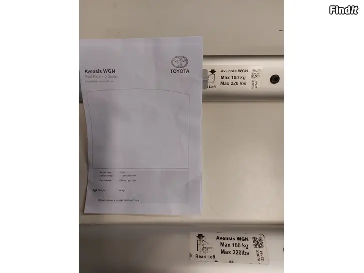 - Kattotelineet/Takräcke Toyota Avensis T27 Farmari OEM vm.2009