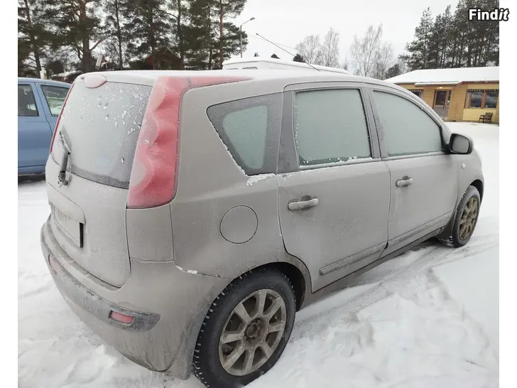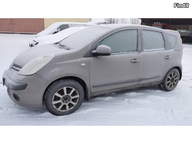 Nissan Note 1.4 bensiini KORJATTAVAKSI. Ilmastointikompressori rikki ja moniurahihna poikki.