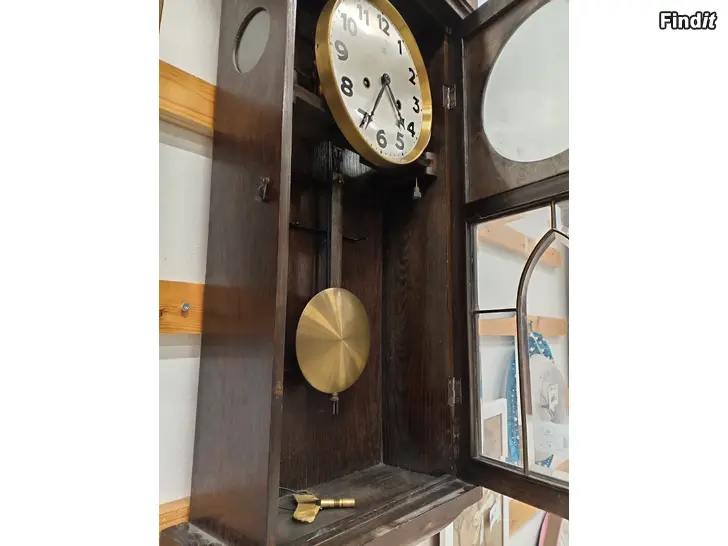 Ruskea vanha seinäkello.