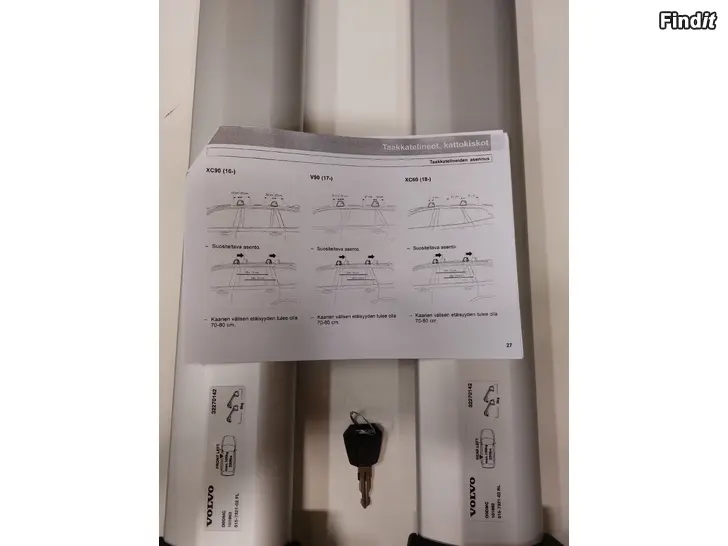 Volvon alkuperäiset lukittavat 1 kpl avaimia sekä tulostetut asennusohjeet