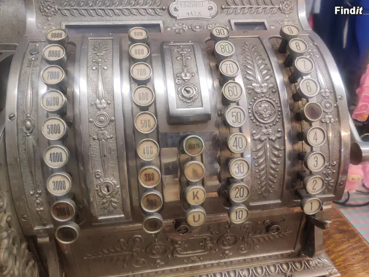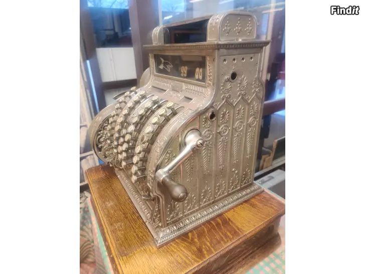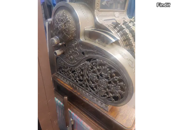 Hieno hyväkuntoinen vanha 1800- luvulta oleva kassakone. Painaa yli 80 kg. Kassa laatikolla. Kaikki toimii. Koneessa on vanha kuitti rulla sisällä !