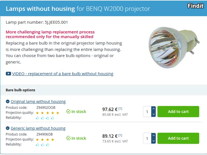 BenQ W2000 Full HD videotykki johon saa n. sadalla eurolla uusia lamppuja jos vanhasta ottaa kehikon. https://www.beamer-parts.eu/projector-lamp/benq/benq-w2000/ toimitus Suomeen seuraavana arkipäivänä tilauksesta.