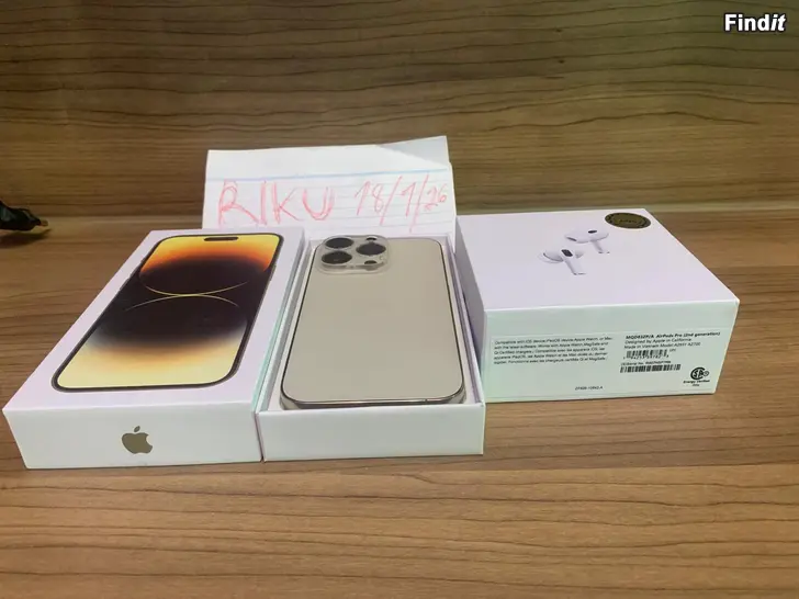 Myydään uutena 24. helmikuuta 2023 ostettu Iphone 14 pro kulta 128gb muistilla. Puhelin ostettu veikon koneesta ja tästä alkuperäinen ostokuitti on olemassa. Toiminut tähän päivään asti täysin moitteetta ja puhelimessa ollut silikooni suojakuori ja panssarilasi paikoillaan ihan viime päiviin asti. Akku vaihdettu joulukuussa 2025 applen valtuuttamassa liikkeessä ja akun kapasiteetti on 100 tällä hetkellä.