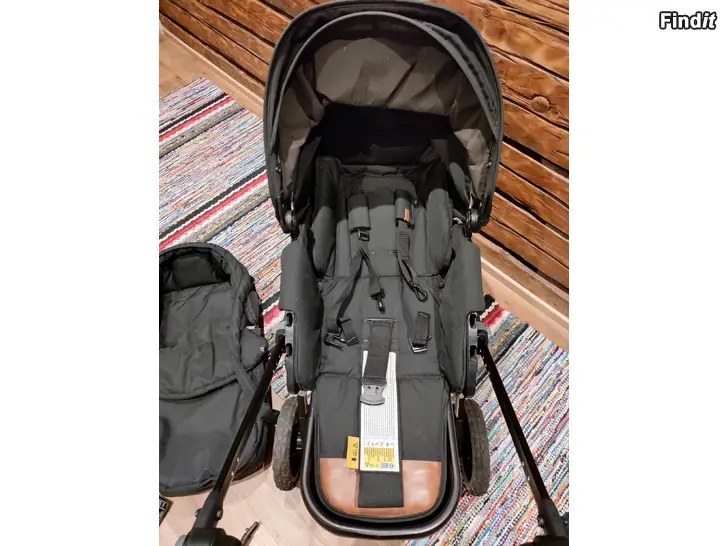 Smidig vagn som är lätt att fälla ihop & tar lite plats. Vagnen är i riktigt bra skick. Endast lite nötningar på bågen som syns på bilden.