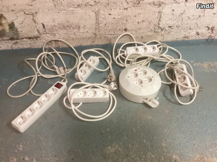 Erityyppisiä ja -pituisia maadotettuja jatkojohtoja kuusi kpl.