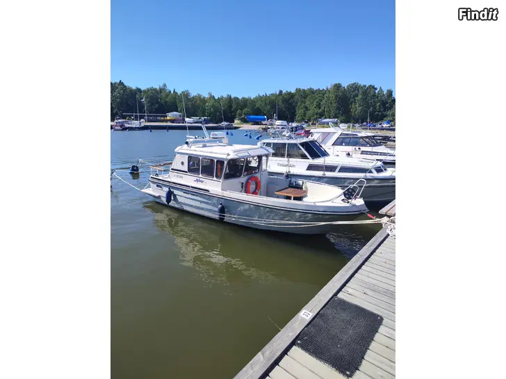 Tästä hyvä ja monipuolinen puoliliukuva vene vaikka retkeilyyn, yhteysveneeksi tai taksiveneeksi. Makuutilat 3-4 henkilöä koosta riippuen. Jääkaappi ja hella löytyy.