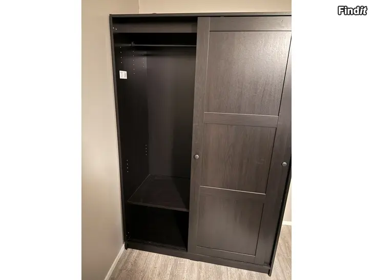 Myydään Ikea Rakkestad liukuovikaappi. Väri mustanruskea. Mitat 117 x 55 x176 cm. Nouto Korkeamäki, Vaasa.