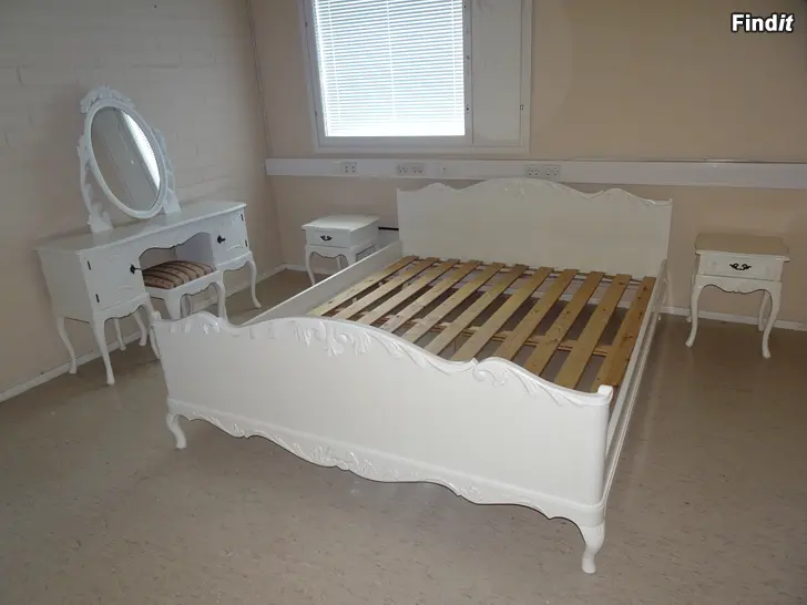 Myynnissä sänky, 2 kpl yöpöytä ja meikkipöytä + penkki.