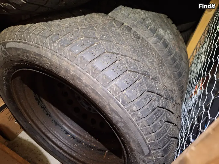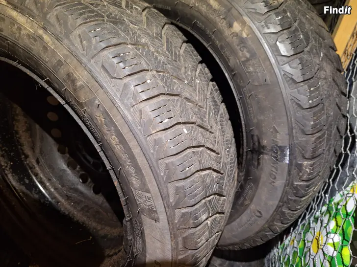 Vanteilla asennettuna käytetyt 205/60R16 Continental Viking 7 ja Michelin X-Ice Snow kitkarenkaat.