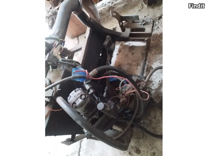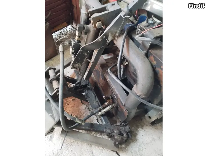 Lappeen tekemä maasturin keulaan auravarustus.Pumppu remmikäyttönen.Ollut sylinteri vain nostossa.Kääntö nyt manuaali,paikka ja hydrauliikka on kyllä syltylle.Rumasti hitsailtu sieltä täältä, mutta jäi toimivana käytöstä.Ei levyä.