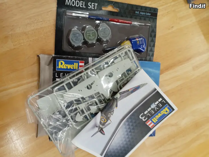 SuperMarine Spitfire Mk.lla koottava lentokone. Paketti on avattu, mutta kaikki osat on avaamattomat