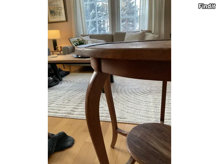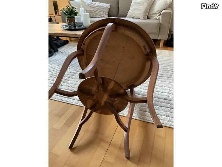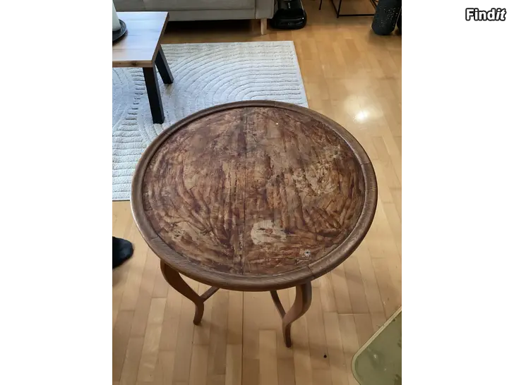 Myydään vanha puinen pöytä. Halkaisija 65 cm, korkeus 67 cm.