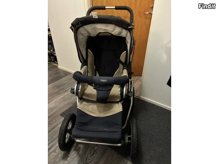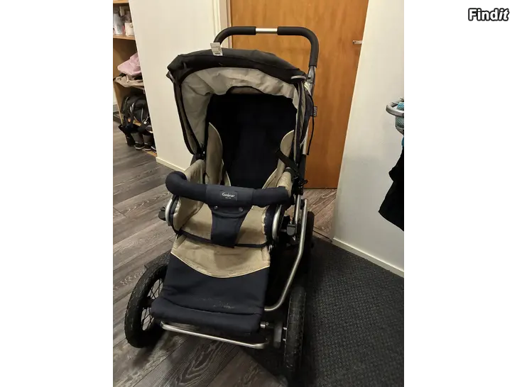 Jag vill sälja vår sons gamla barnvagn och den var begagnad då jag köpte den och den har varit bra . Barnvagnen kan justeras i ligg och sittläge och det finns en sovsäck , bärande sovsäck med handtag, regnskydd och en manualbok finns med på köpet . Hjulen kan tas bort ifall vagnen inte ryms i bakluckan på bilen och den går att vika ner också .