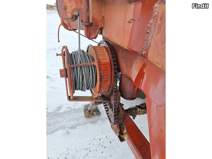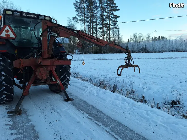 Pieni metsäkuormain vinssillä myrsky puiden korjuuseen. Ulottuuvuus 3.5-4m vinssissä uusi vaijeri noin 50m.