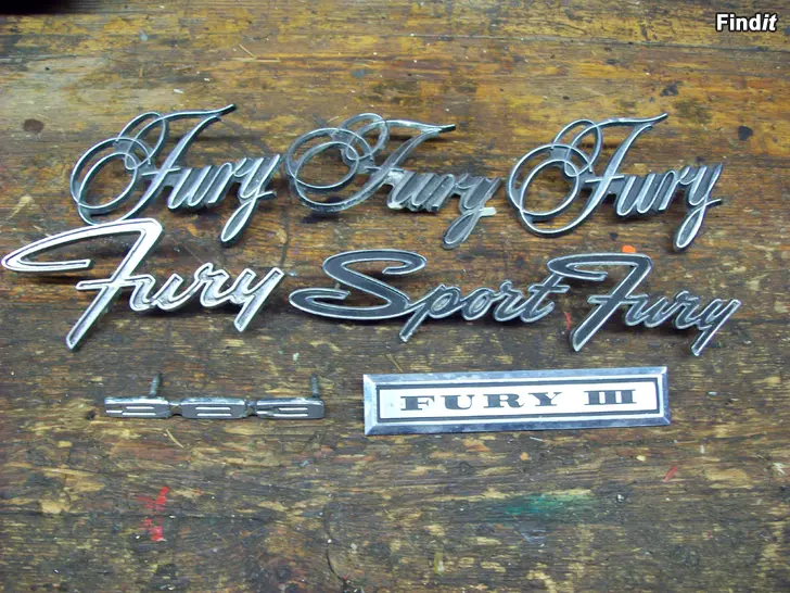 Kuvien mukaisia metallimerkkejä Plymouth Furyyn 8kpl. Joistain joku piikki poikki. Mahdolliset postikulut ostajalle.