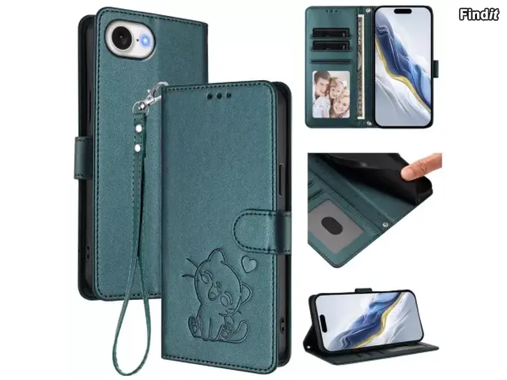 Anna puhelimellesi persoonallinen ilme ja luotettava suoja. Tämä tummanvihreä suojakotelo on valmistettu laadukkaasta keinonahasta ja siinä on kaunis kohokuvioitu sydän- ja kissa-aiheinen kuvio. Mukana toimitettava käsihihna tekee puhelimen käytöstä mukavampaa ja helpottaa sen kantamista.