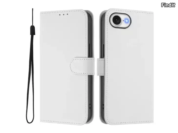 Valkoinen suojakotelo iPhone 16e puhelimeen. Näissä kuorissa on kolme paikkaa luottokorteille, setelitasku sekä kiinnike puhelimelle. Suojakotelon avulla voit tukea puhelimen vaaka-asentoon ja katsoa esimerkiksi elokuvaa puhelimen näytöltä. Avattava kansi puolestaan antaa suojan puhelimen näytölle.