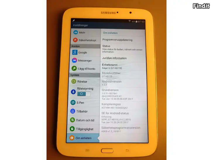 Samsung Galaxy Note 8.0 Wi-Fi, Quad-core 1.6 GHz Cortex-A9, 16GB lagring + 2GB RAM. Android 4.4.2. En tablet för retroentusiasten 😎👍köpt förra vintern som New old stock produkt så mycket bra skick på enheten och batteri, skulle uppdatera programvaran med det blev aldrig av. Använt den som väckarklocka och för Facebook. Begränsad funktion av webbläsaren pga av den gamla programvaran. Säljes utan laddare. Pris 20e kontant betalning. Finns i Jakobstad.