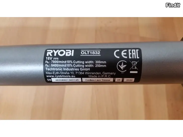 Akkutrimmeri Ryobi 18V One+ OLT1832 ei akkua -45e